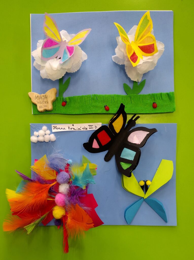 Po długiej i mroźnej zimie przyroda powoli budzi się do życia. Na przedwiośniu, a dokładnie 14 marca obchodzony jest Dzień Motyla. Święto to zostało ustanowione, aby pamiętać o tych nie tylko niezwykle pięknych i delikatnych, ale również bardzo pożytecznych owadach. W świetlicy odbył się konkurs plastyczny, w którym dzieci wykonały przestrzenne motyle stosując zróżnicowane materiały plastyczne. Feeria motylich barw i kształtów spowodowała, że na dobre zaczęliśmy myśleć o zbliżającej się wielkimi krokami wiośnie…