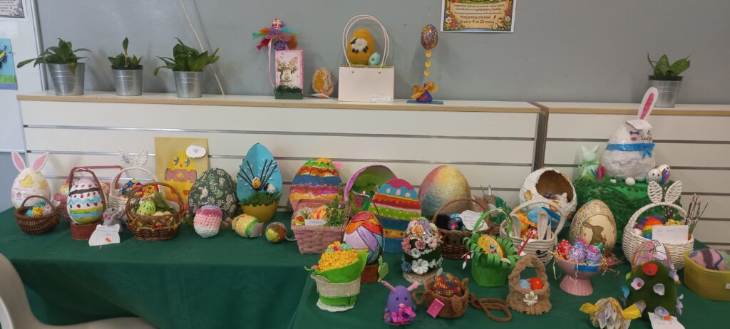 W oczekiwaniu na Święta Wielkanocne w świetlicy szkolnej odbył się konkurs na najpiękniejszą pisankę. Ilość prac przyniesionych przez dzieci była ogromną, a jakość i poziom ich wykonania był naprawdę wysoki.